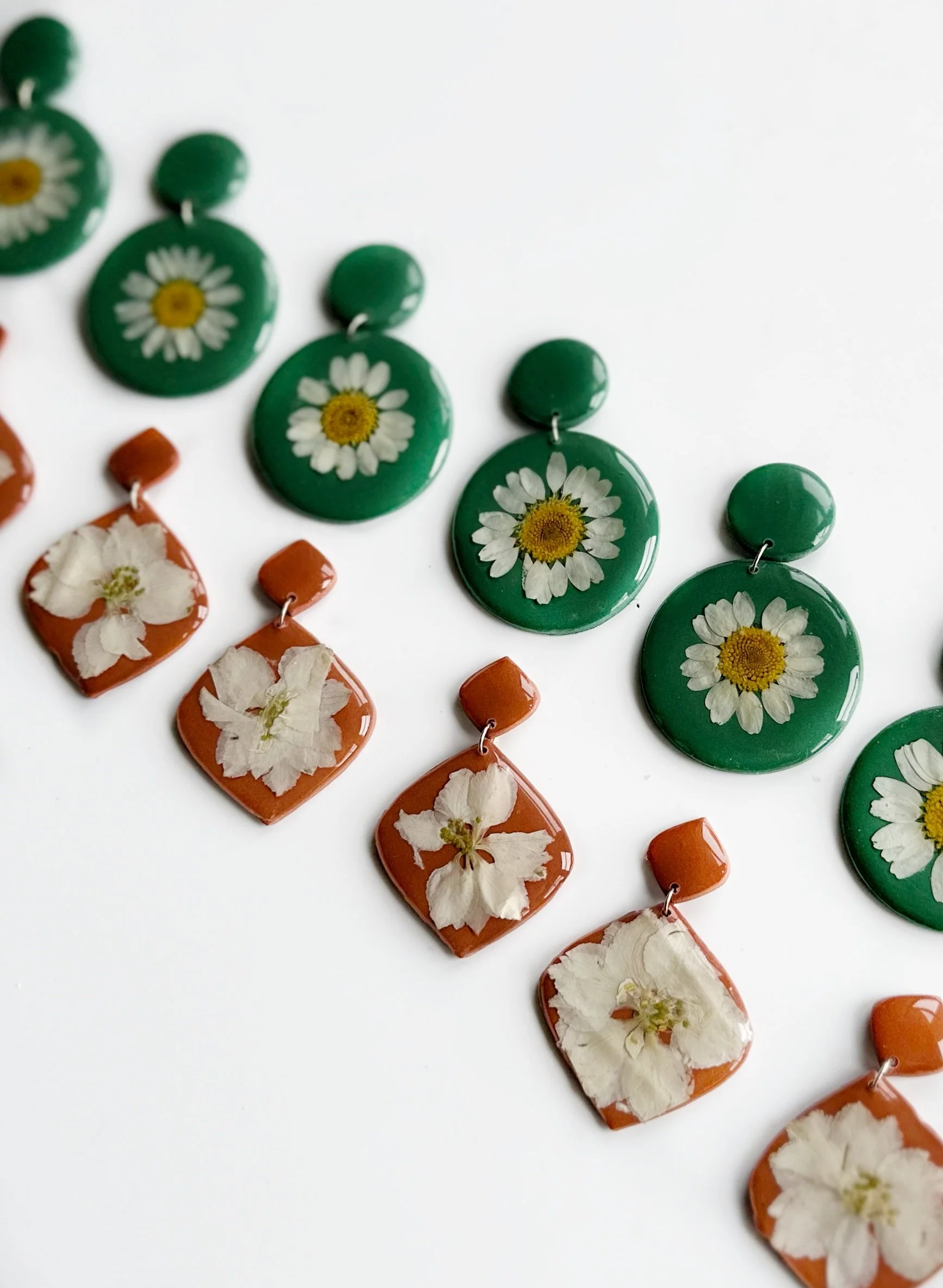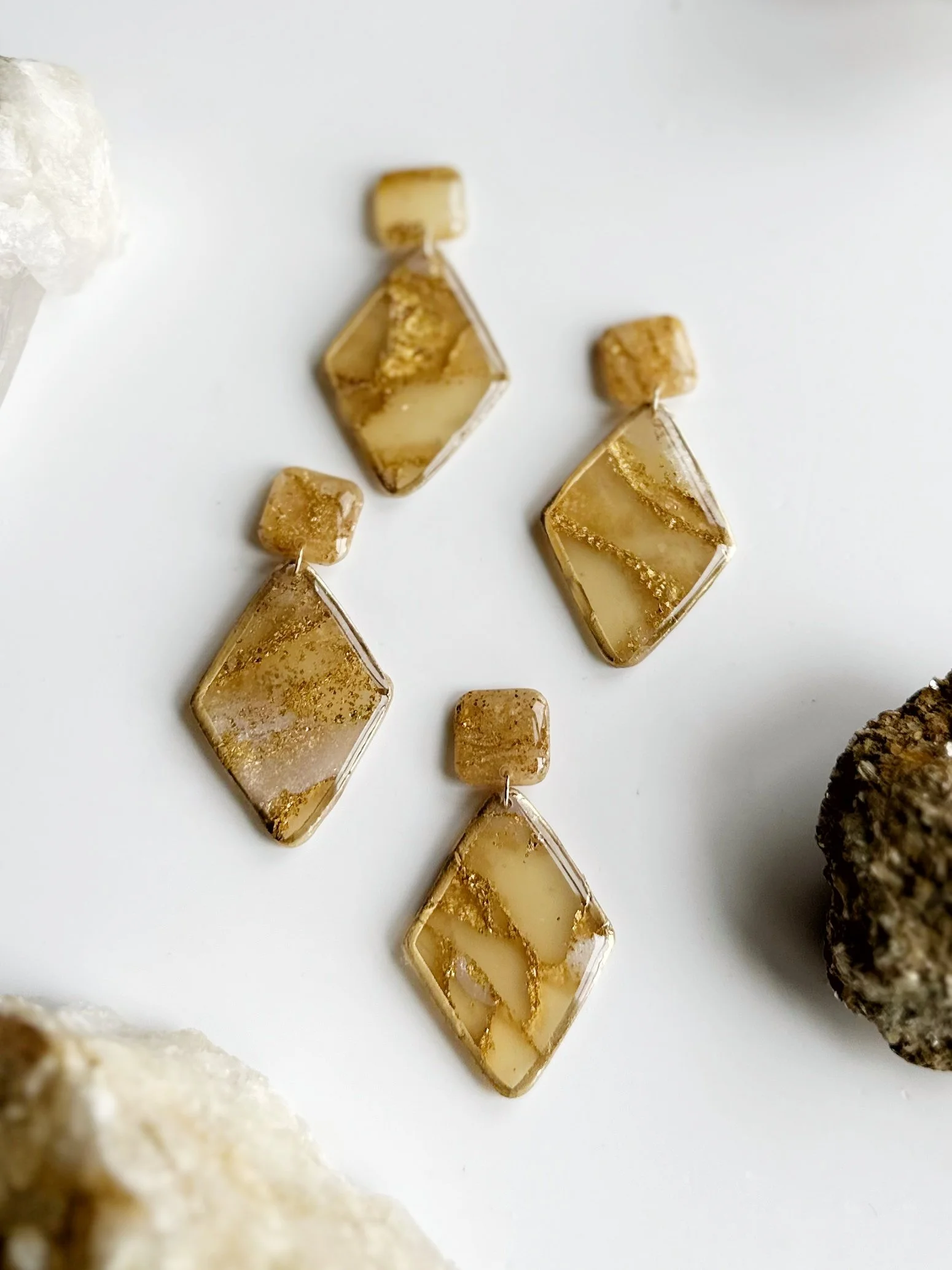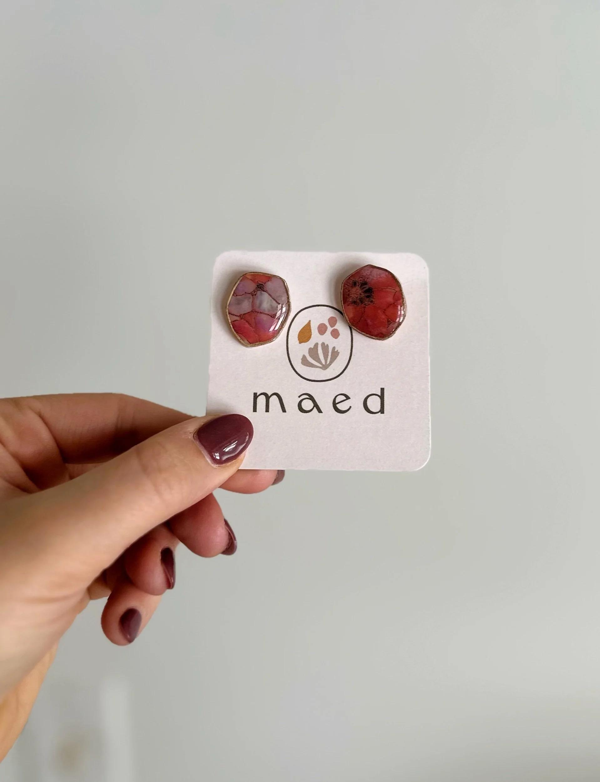 Every earring is unique and made by hand with love. For those with sensitive ears, the post on the earrings are surgical steel and the hooks are gold filled.