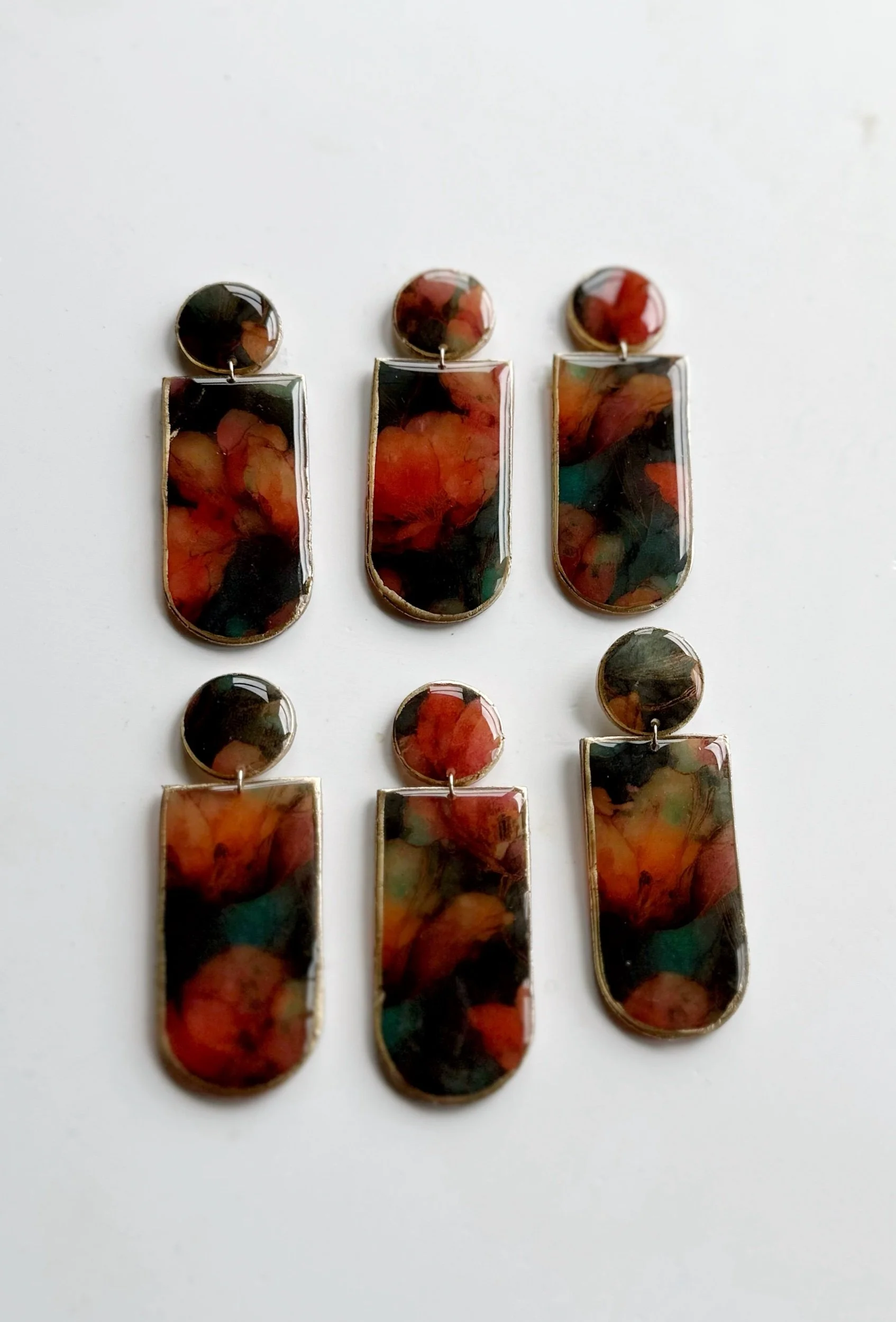 Stained glass earrings. Please note the backside of these earrings have small bubble like marks on the backside as the clay had to be entirely translucent.