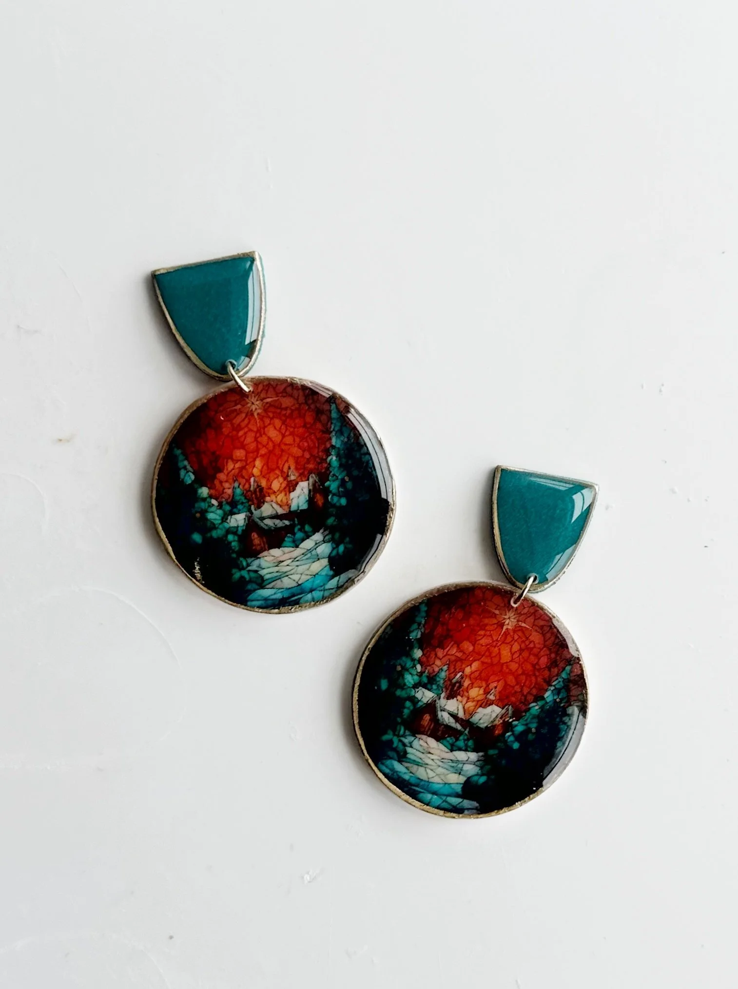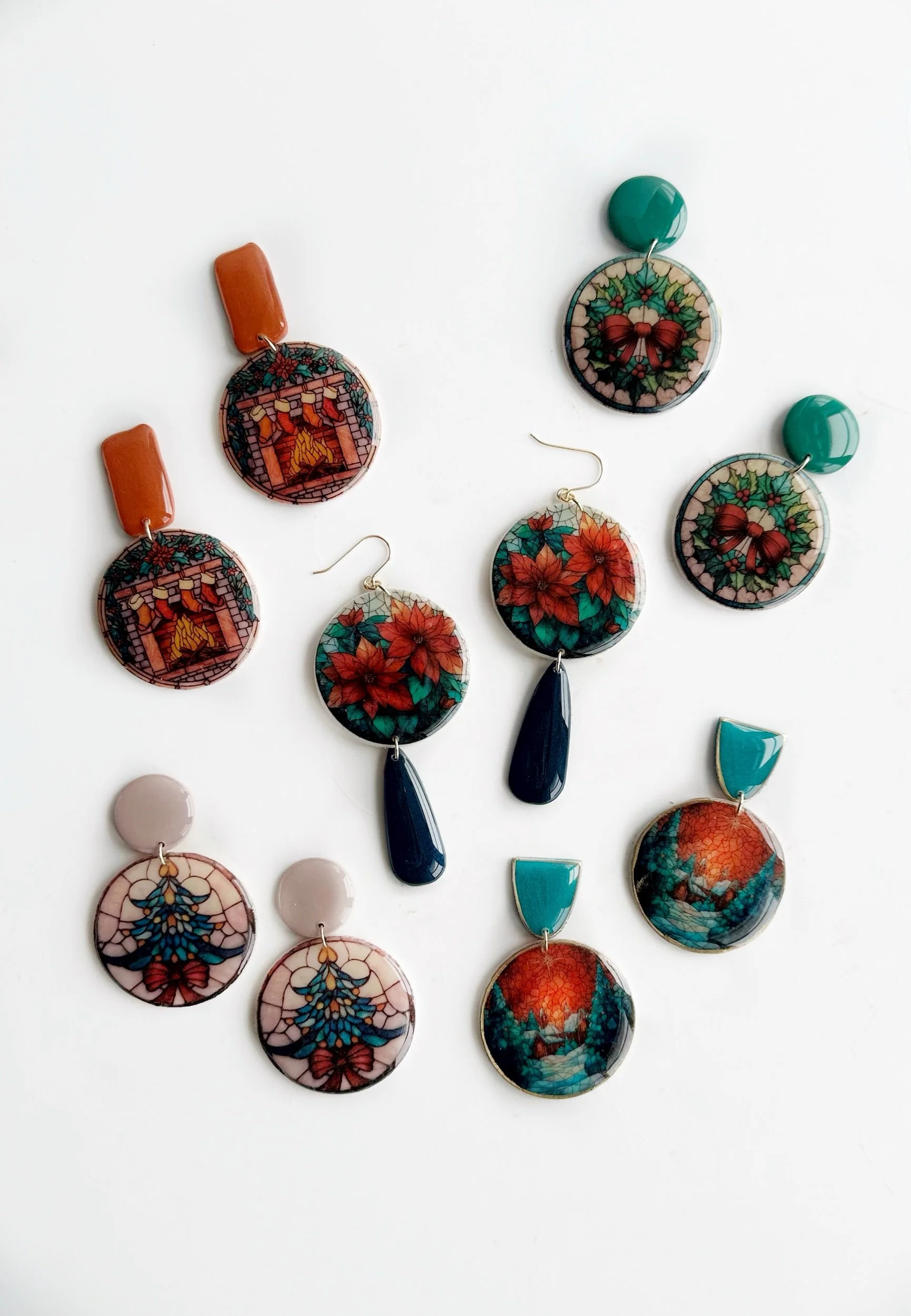 Stained glass earrings. Please note the backside of these earrings have small bubble like marks on the backside as the clay had to be entirely translucent.