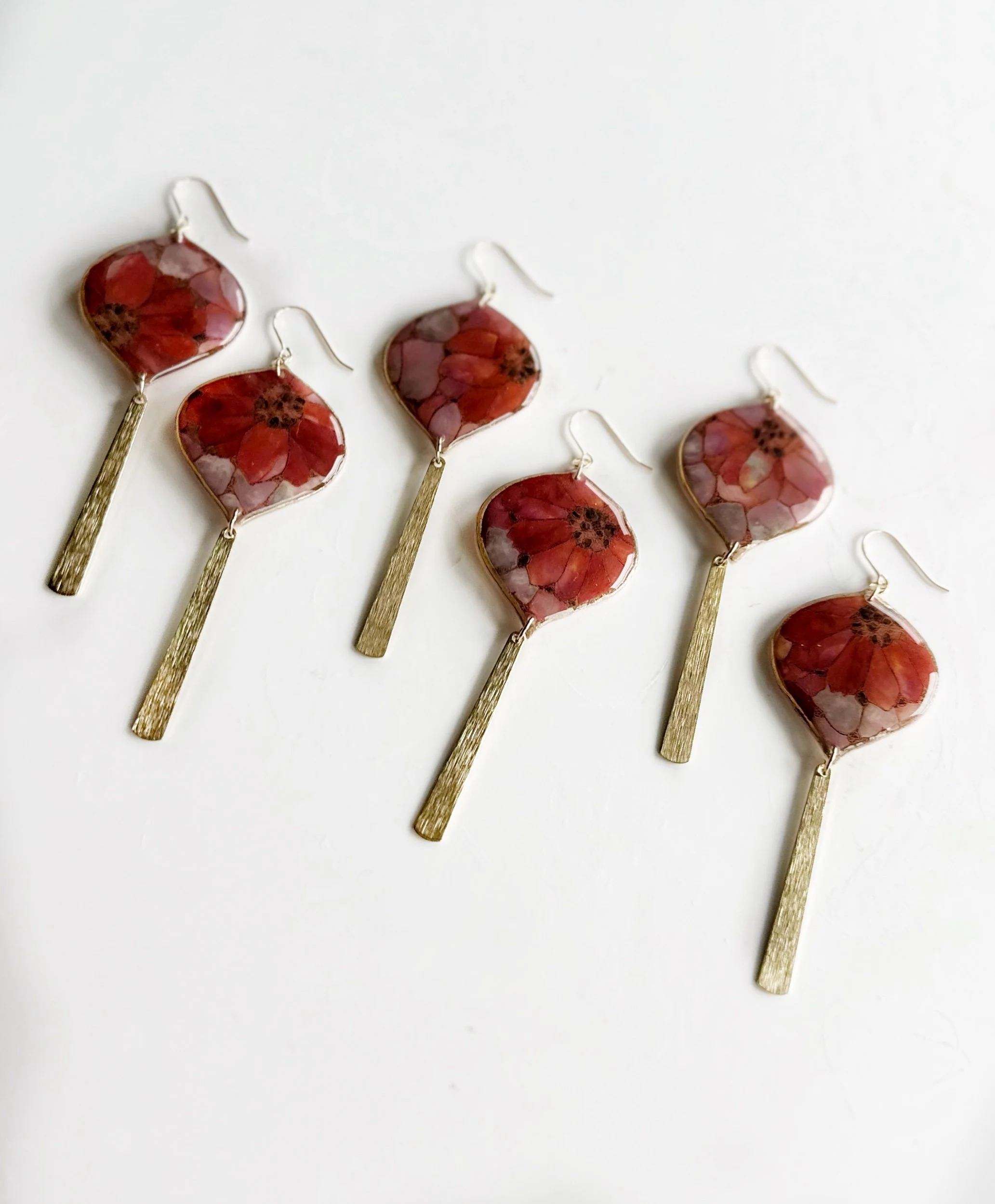 Stained glass earrings. Please note the backside of these earrings have small bubble like marks on the backside as the clay had to be entirely translucent.