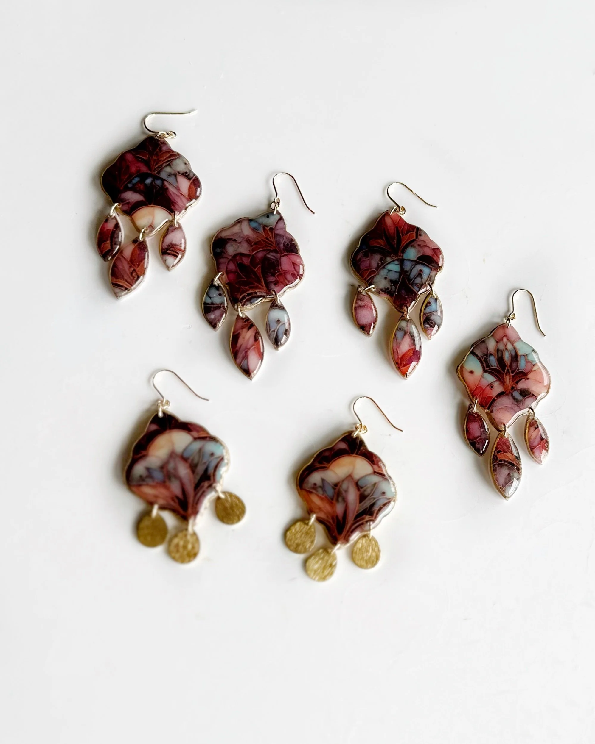 Stained glass earrings. Please note the backside of these earrings have small bubble like marks on the backside as the clay had to be entirely translucent.