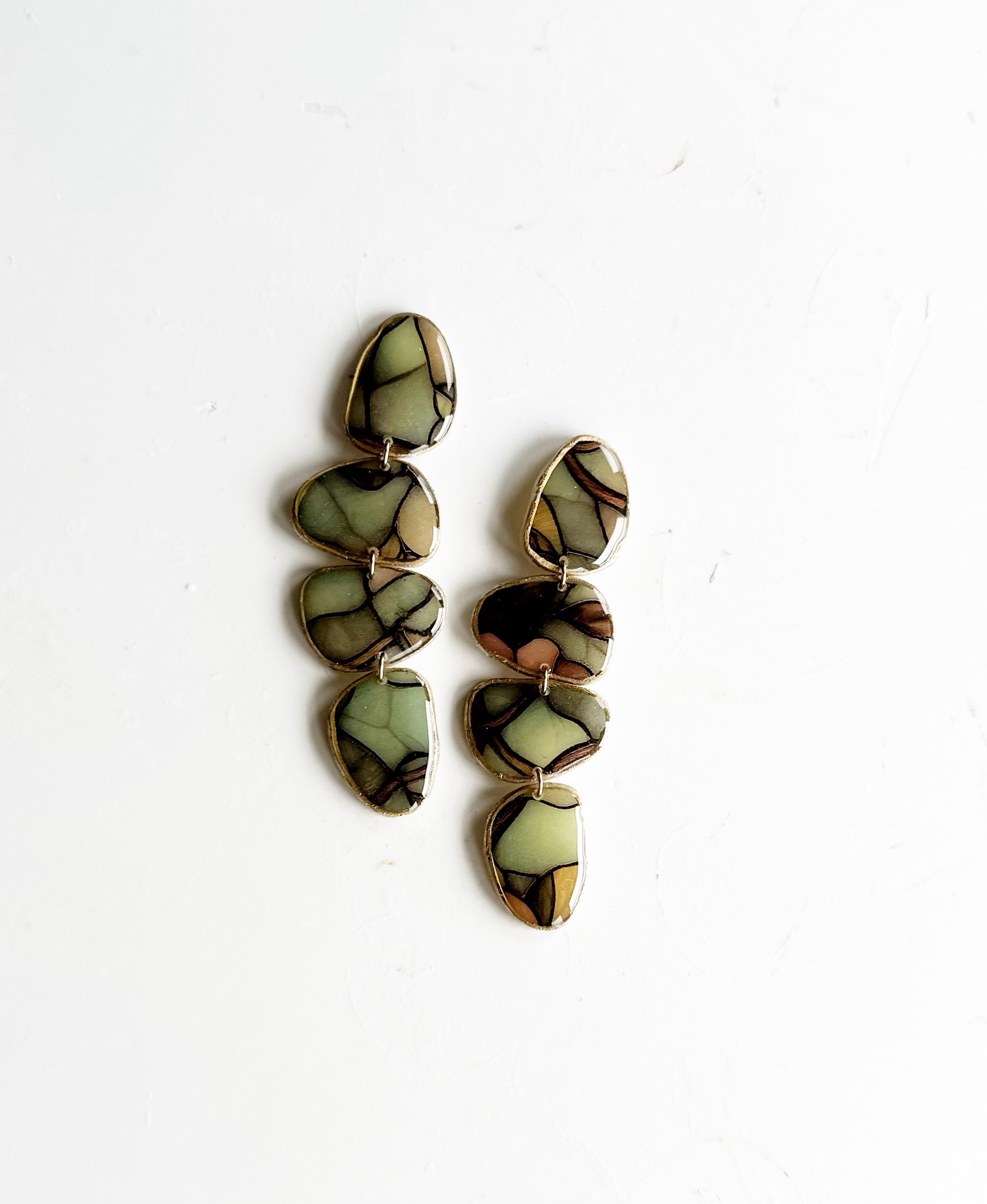 Stained glass earrings. Please note the backside of these earrings have small bubble like marks on the backside as the clay had to be entirely translucent.