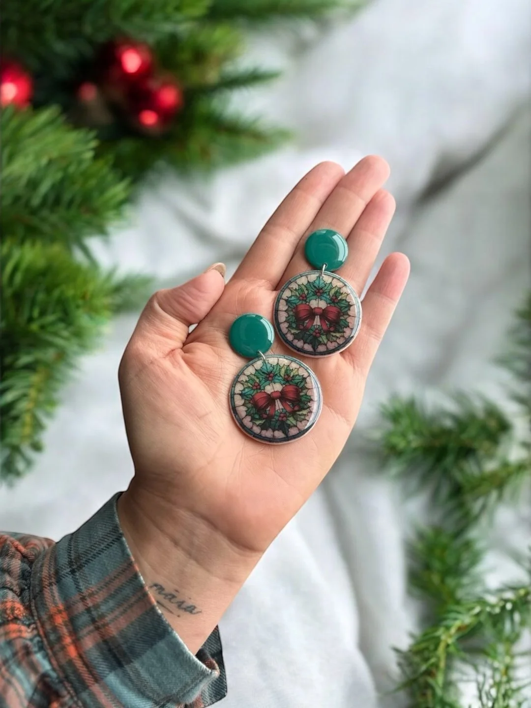 Stained glass earrings. Please note the backside of these earrings have small bubble like marks on the backside as the clay had to be entirely translucent.
