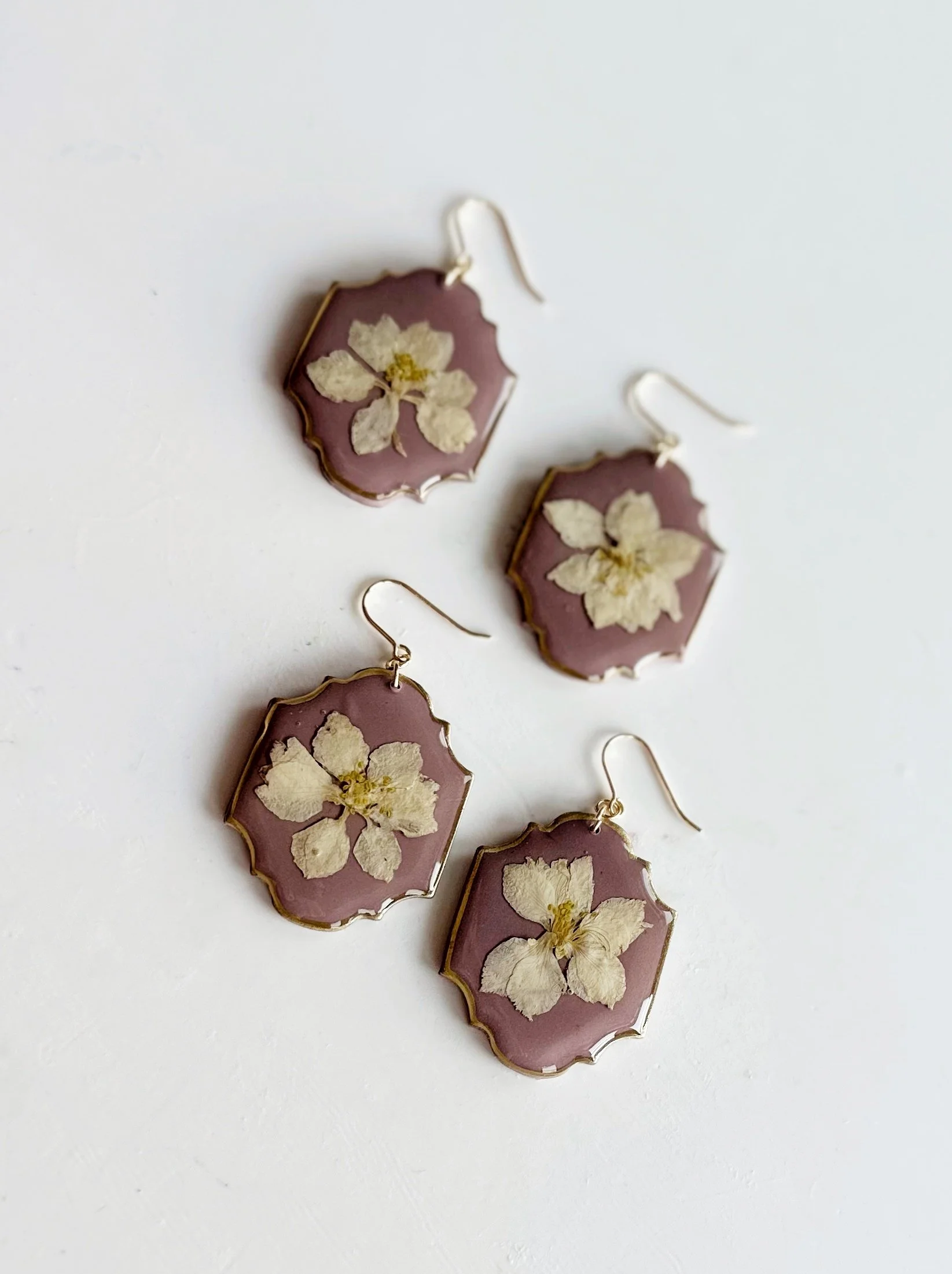 SHOP › Mauve & Larkspur Dangles Image 1 of 1 Mauve & Larkspur Dangles $42.00 SOLD OUT Polymer clay and real pressed florals. Hardware is gold filled. SOLD OUT Added! Polymer clay and real pressed florals. Hardware is gold filled.